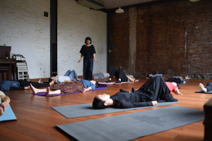 In a group class (Awareness Through Movement), you are guided through small, comfortable movements — mostly lying down, sometimes sitting or standing. There’s no forcing or strain, just a curious exploration at your own pace. People often notice they feel taller, lighter, and breathe more easily afterwards.